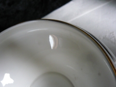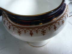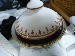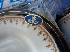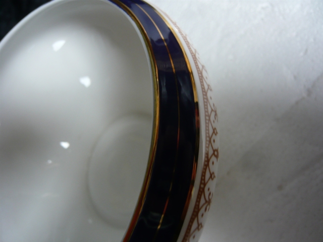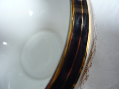 Cobalt blue rim cup sizes 2 3/8 inches high 2 1/4 inches in diameter Saucers 4 3/4 inches in diameter |