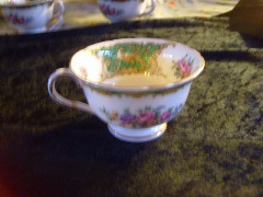 cup sizes 1 3/4 inches high 3 inches in diameter saucers 4 5/8 inches in diameter |