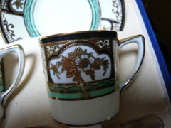 Coffee set and spoons cup size 2 inches high and 2 inches in diameter saucers 4 1/4 inches in diameter |