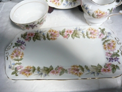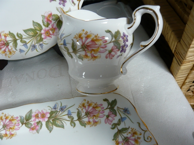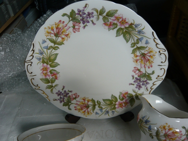 Tray, cake plate, cream jug and sugar dish 4 pieces no cracks chips damage or craze really nice condition |