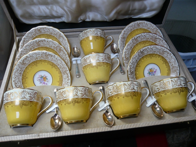 Yellow Band gold filigree Spode Ruskin coffee