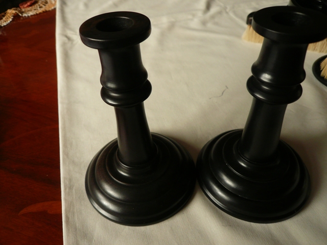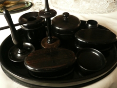 2 candle holders 5 1/4 inches high 1 tray 1 trinket holder 2 1/2 inches high 1 holder for rings 4 3/4 inches |