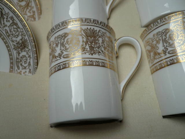 cup sizes 2 1/2 inches high 2 1/8 inches top diameter saucer sizes 4 7/8 inches in diameter |