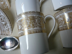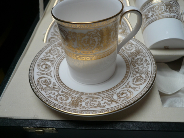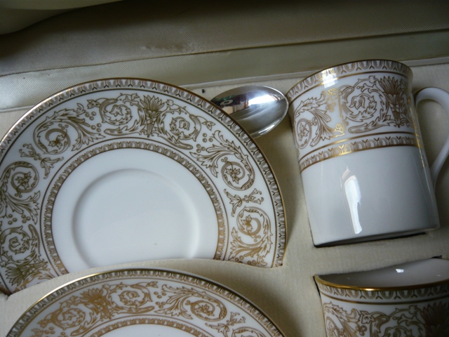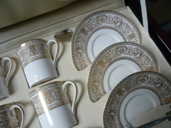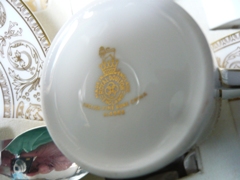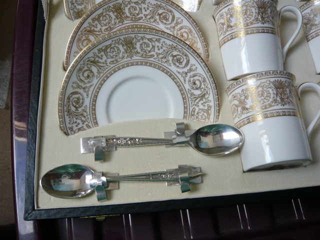 H 4985 6 cups 6 saucers with 6 silver platedspoons marked spring Bouquet |