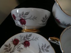 the set looks hardly used the saucers are fine the gild hardly touched the jug looks fine the gild ok the sugar bowl has a scratch on the gold at the base |