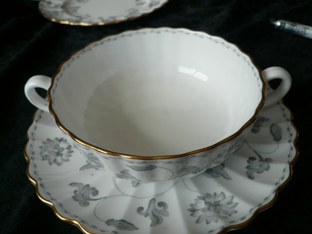 soup dishes around 5 inches diameter saucers around 6 3/4 inches in diameter price for 1 soup coupe 2 saucers £16.50 |
