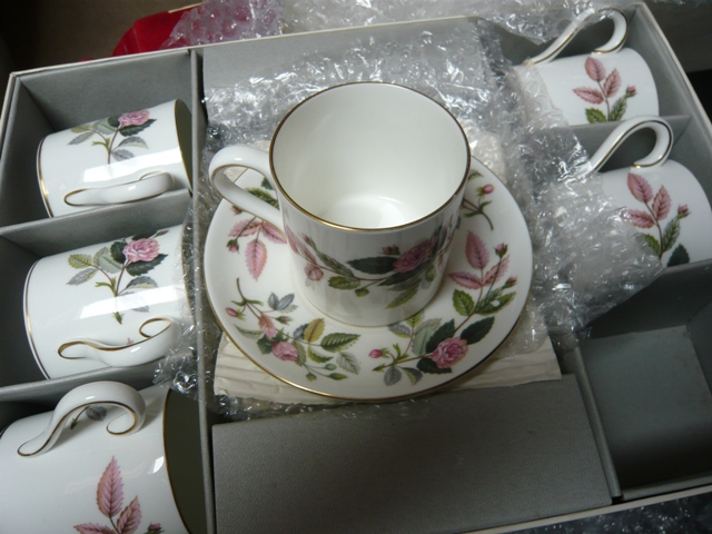 Wedgwood Hathaway Rose cased set 6 cups 6 saucers |