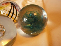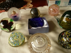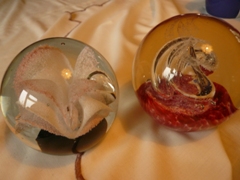 3 Glass paperweights one marked 1976 one marked clearly James 1995 Link to more photos